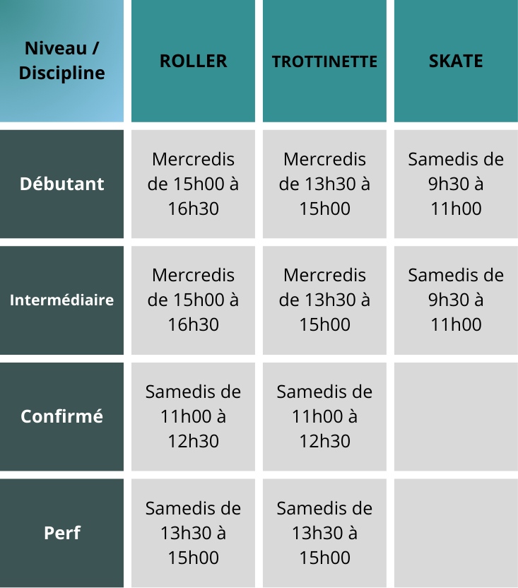 Découvrez nos formules pour nos cours de groupe en roller, en skate et/ou en trottinette freestyle !